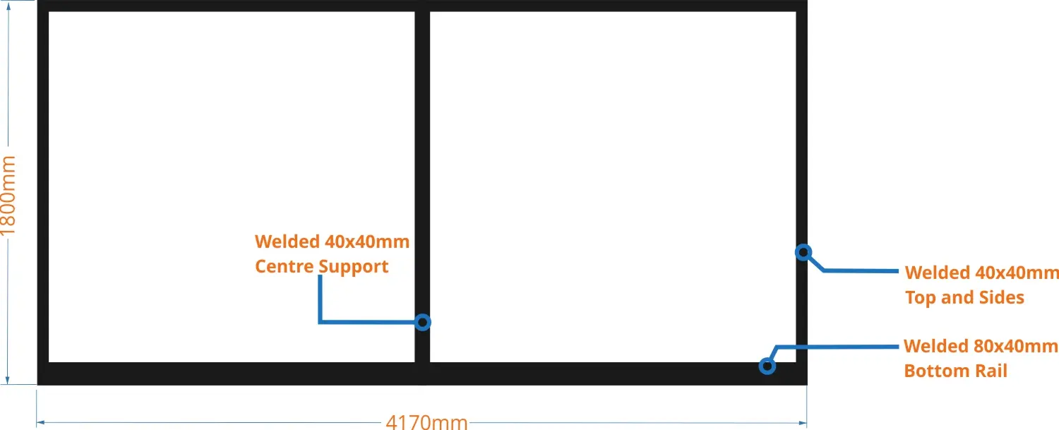 | Max Sliding Gate Opening Size | (Manual Operation: 3970mm factors in an internal support post)(Automated/Motorised: 3670mm) |